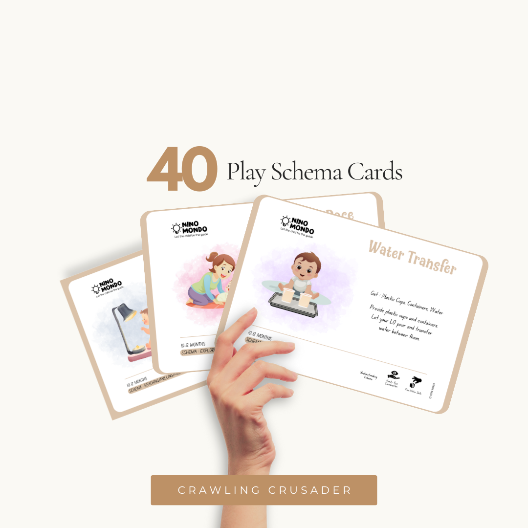 A set of 40 beautiful digital cards to support the neurological schemas your child is likely to develop in this quarter Each card offers a unique, playful activity idea specifically designed for your little one. The best part? All these activities use common household items, making it super easy and convenient to set up a fun playtime.