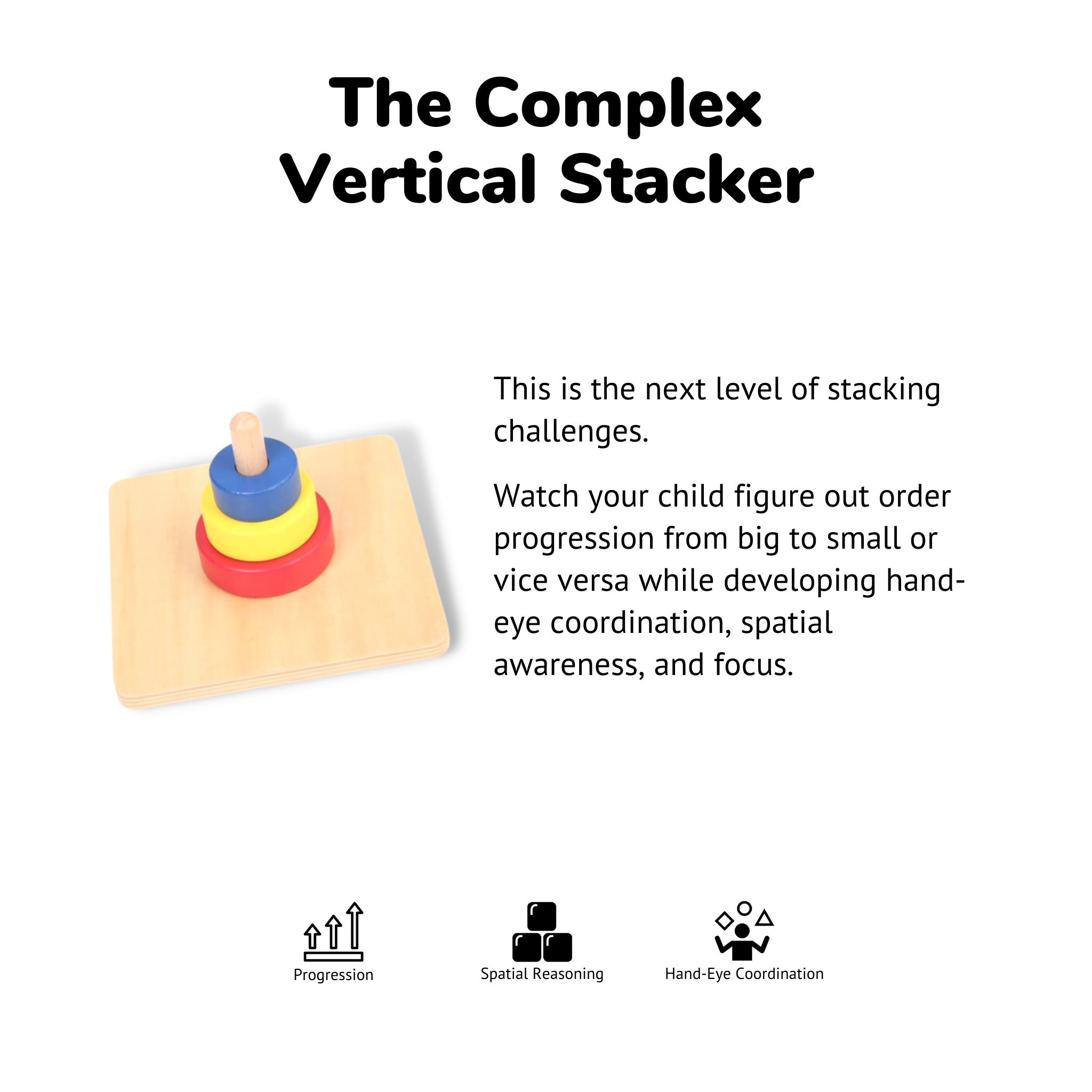 This bundle includes Montessori Toys that support: Focus Development| Spatial Reasoning | Progression Order | Motor Skills | Independence